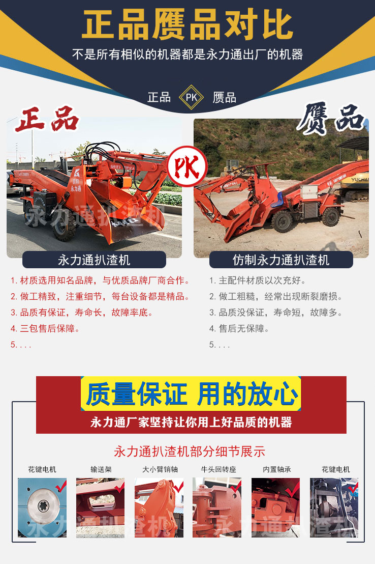 永力通售后服務(wù)人員在回訪客戶的過程中,不止一次發(fā)現(xiàn),有部分我公司離職和被開除銷售人員、同行小廠家,利用客戶對永力通的信任,將假冒偽劣的甚至“高仿”的“永力通扒渣機(jī)”銷給不知情的客戶。雖然外觀相似,但論質(zhì)量卻有著天壤之別。